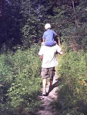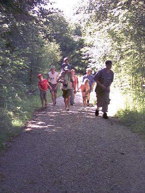Den etwas älteren Jägern fällt es schwer, bergan zu gehen.