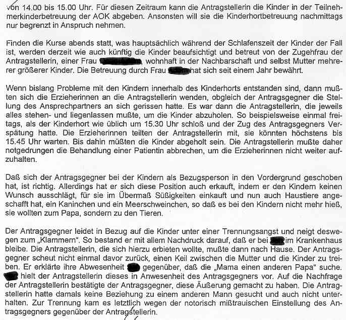 Aussage der Mutter.