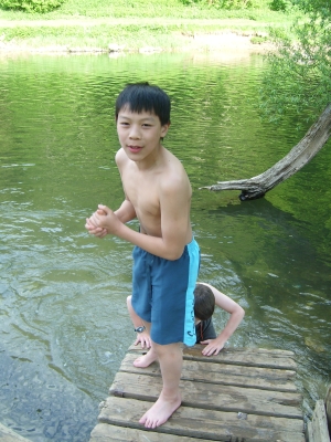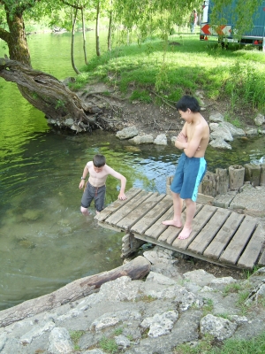 Vor dem Hochseilgarten. Leider müssen wir uns noch ein paar Stunden gedulden.